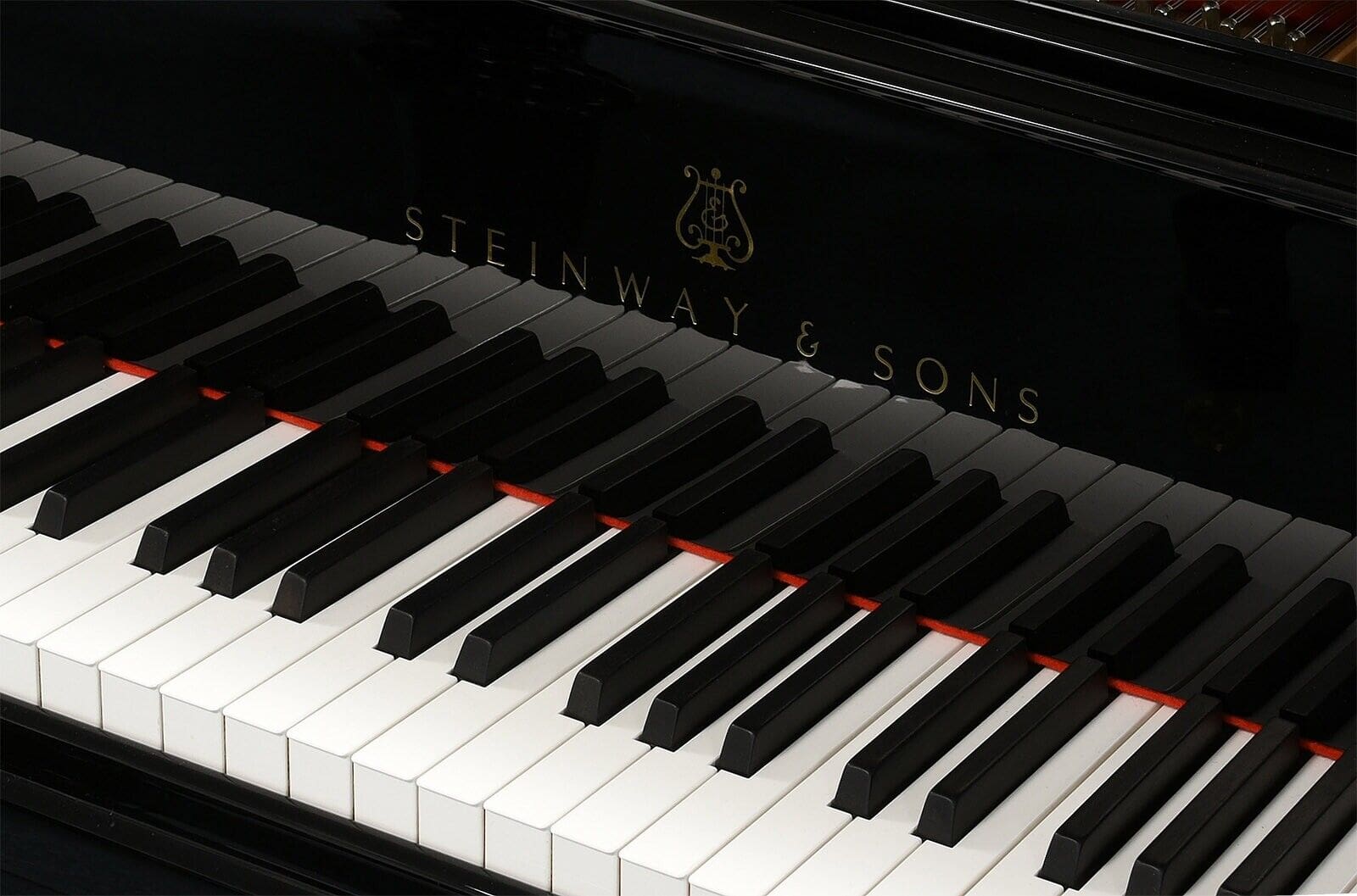 Steinway & Sons Flügel Modell M-170, Baujahr 1919 | Länge 170 cm, Breite ca. 142 cm, Gewicht rund 270 kg | Generalreparatur 2022 mit neuen Saiten und Stimmwirbel | Oberfläche in schwarz Hochglanz, nahezu neuwertig | 88 Tasten und 3 Pedale (inkl. Sostenuto) | Hervorragende Spielart und Klang, ideal für Pianisten und kleine Bühnen | 5 Jahre Garantie auf Funktionstüchtigkeit