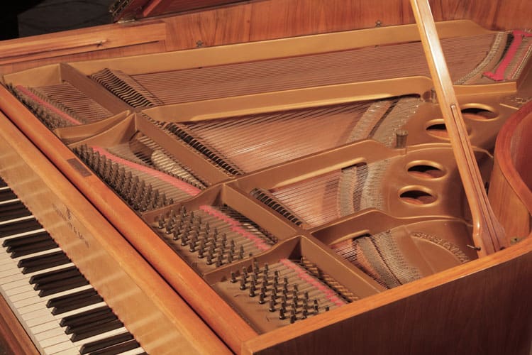 Das Steinway Model O ist bekannt für seine beeindruckende Klangfülle und dynamische Ausdruckskraft. Es bietet eine Tastatur, die sowohl für sanfte Melodien als auch für kraftvolle Stücke geeignet ist. Der Klang ist warm und voll, wodurch jede Note in Perfektion zur Geltung kommt. Die Konstruktion des Klaviers ermöglicht eine außergewöhnliche Ansprache und Reaktionsfähigkeit, die Pianisten dazu einlädt, ihre Kreativität auszuleben und ihre musikalischen Ideen umzusetzen.