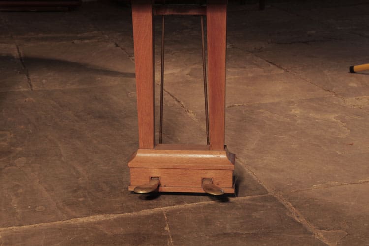 Ein besonderes Merkmal dieses Modells ist der mit einer halb eingeklemmten Prop-Stütze ausgestattete Deckel, der es ermöglicht, diesen in unterschiedlichen Höhen zu öffnen. Dies sorgt für eine flexible Klangprojektion und ermöglicht es dem Spieler, den Klang an die jeweilige Spielsituation anzupassen. Die Klavierlyra ist mit zwei Pedalen ausgestattet, wobei die quadratisch konischen Spindeln für zusätzliche Stabilität und Eleganz sorgen.
